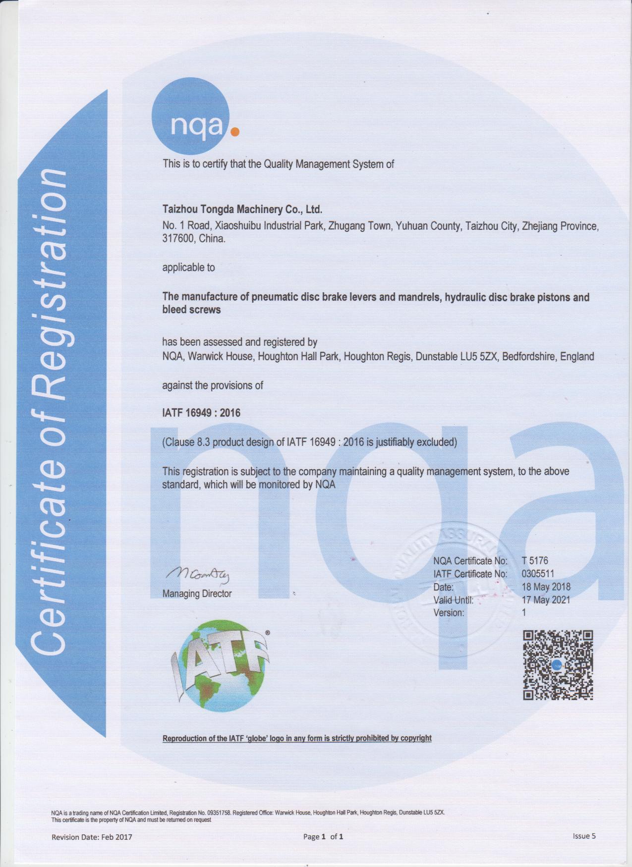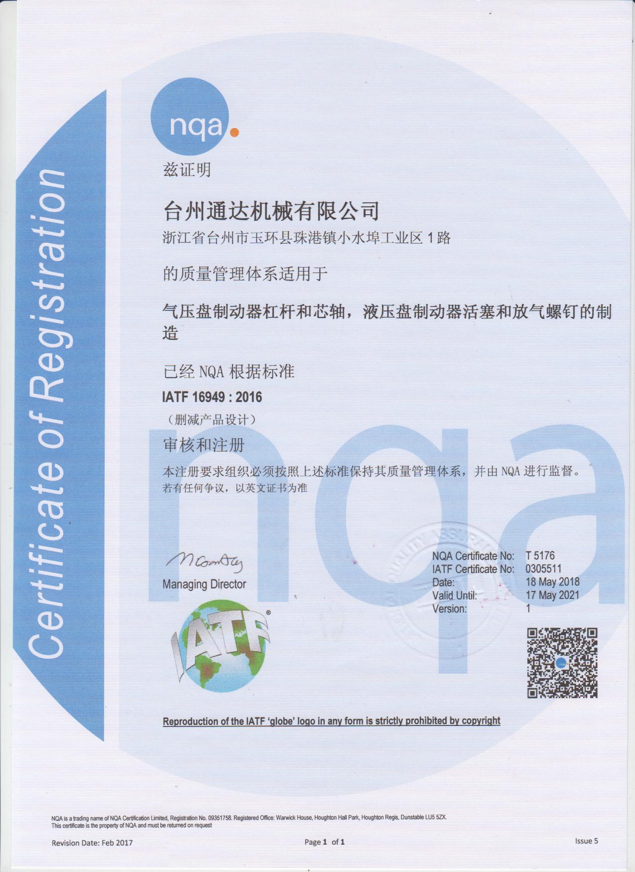 IATF16949:2016證書(shū)